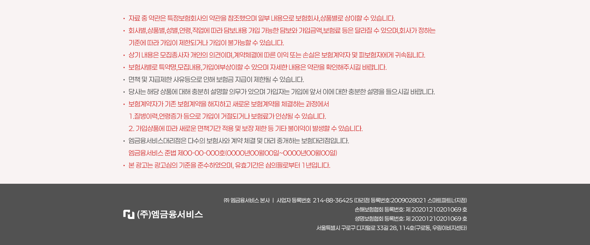 [개인정보의 취급/위탁 : 주식회사 엠금융서비스 스마트파트너지점]